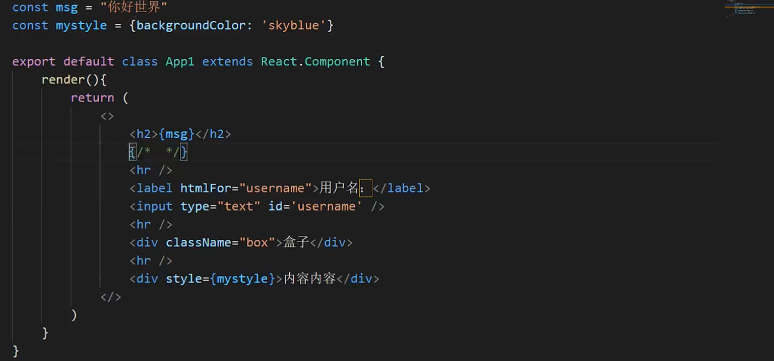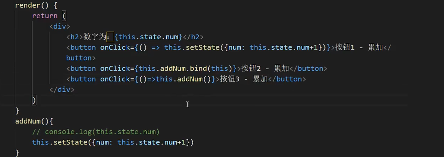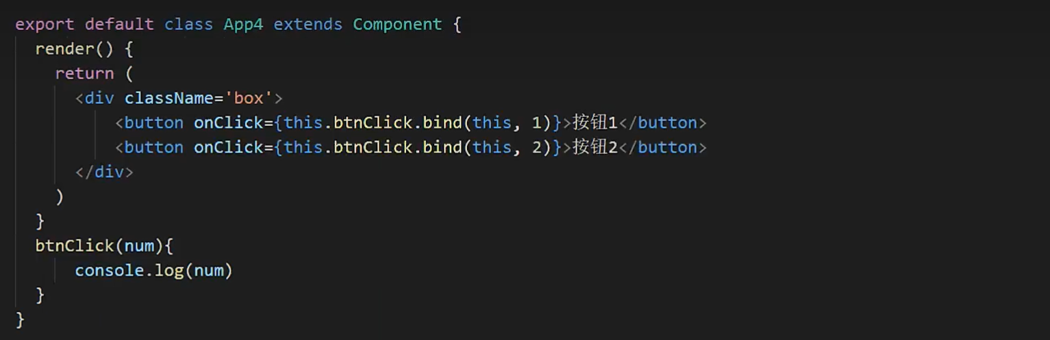 class App extends React.Component { handleClick() { console.log(this);// undefined } render() { return <div onClick={this.handleClick} >点我</div>; } }