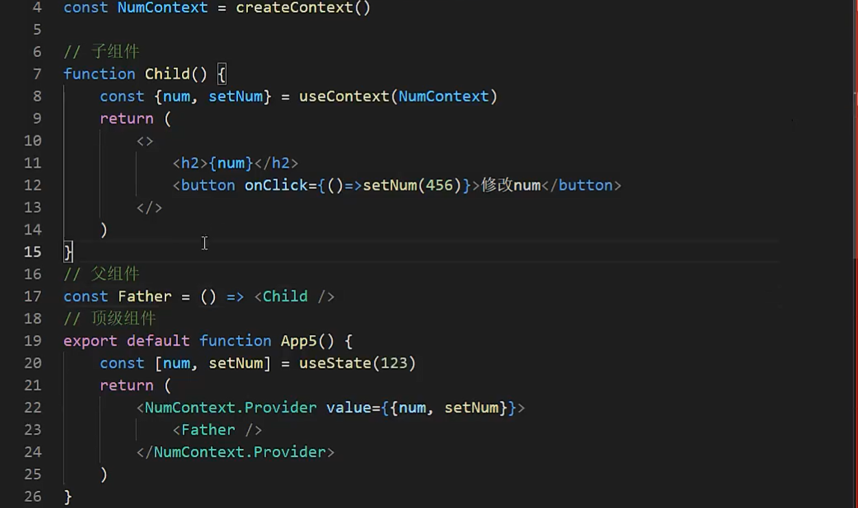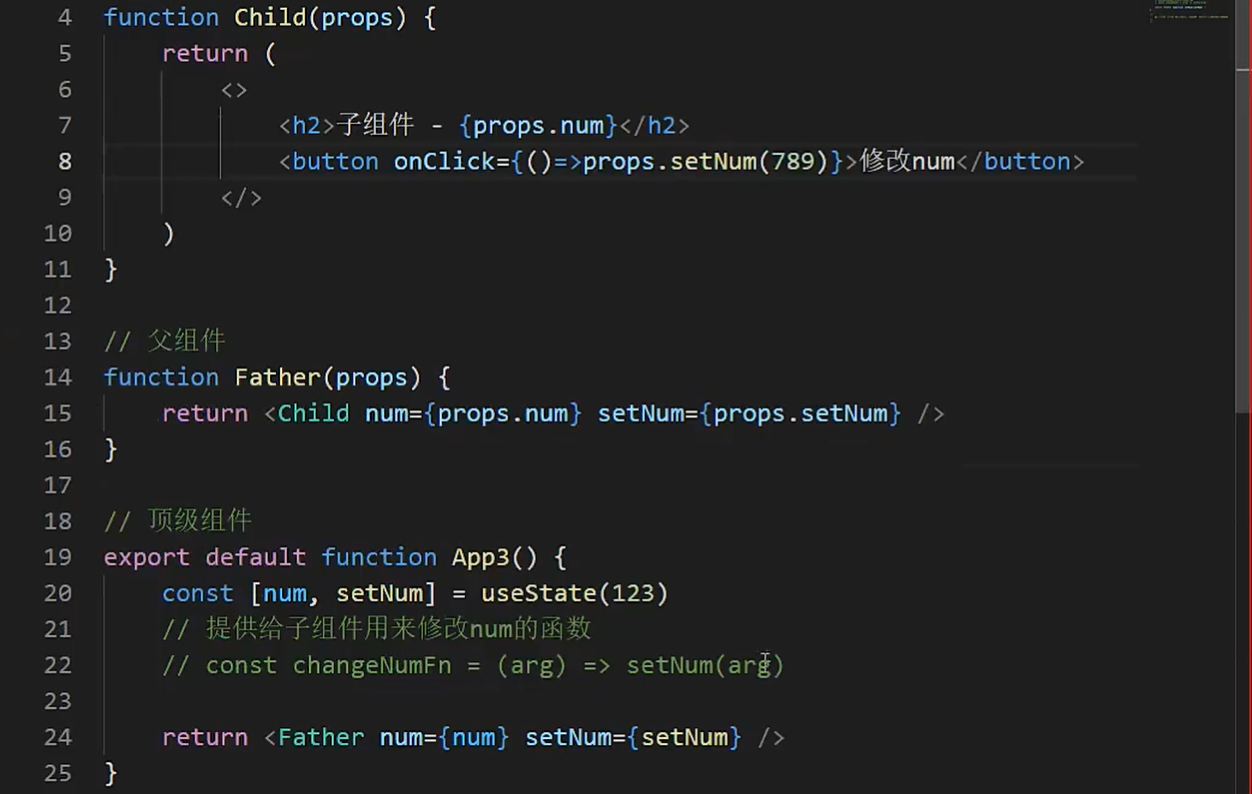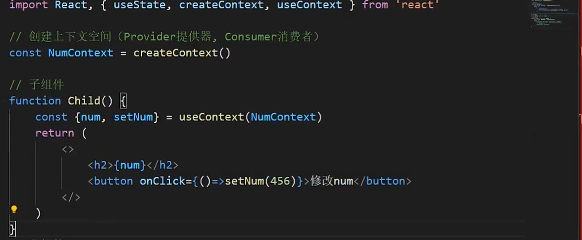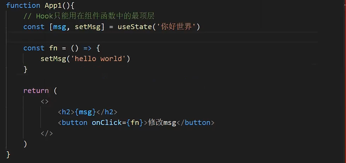 - useState:通过 useState 为组件提供状态。useState 的参数是 state 的初始值,他只有在组件第一次渲染的时候会生效,他的返回值是一个数组,第一个是 state,第二个是设置state的函数。